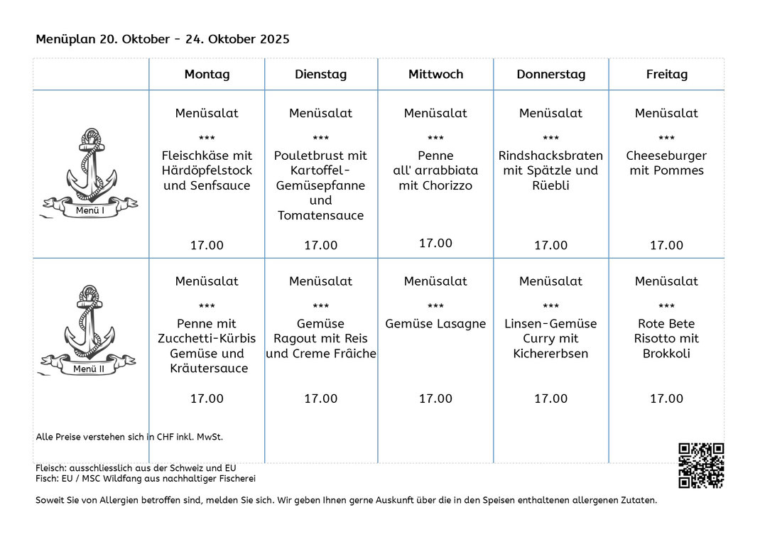 Mittagsmenüs erhältlich von Montag bis Freitag: 11.30 - 13.00 Uhr